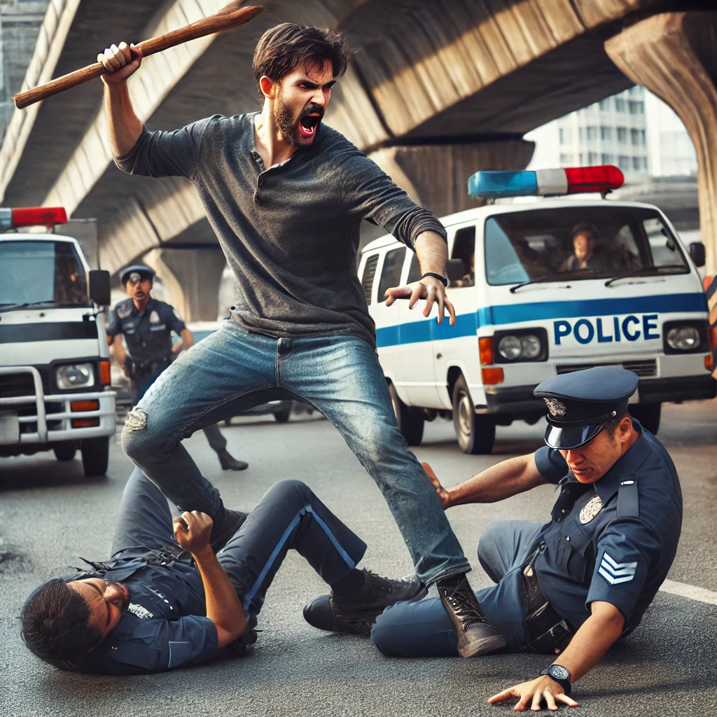 अंमलदार सुधीर गाडगे यांनी वाहनचालकाचा फोटो काढण्यासाठी चलन मशीन बाहेर काढताच आरोपीने संतप्त होऊन पोलिसांच्या कॉलरला धरले. ही परिस्थिती पाहून चौकातील फौजदार शिंदे आणि हेडकॉन्स्टेबल थोरात मदतीसाठी धावून आले. मात्र, आरोपीने कारमधून लाकडी दांडा काढून गाडगे यांच्यावर हल्ला करण्याचा प्रयत्न केला. थोरात यांच्या पायावर जोरदार फटका मारला, तसेच फौजदार शिंदे यांना हाताने मारहाण करत शिवीगाळ केली.