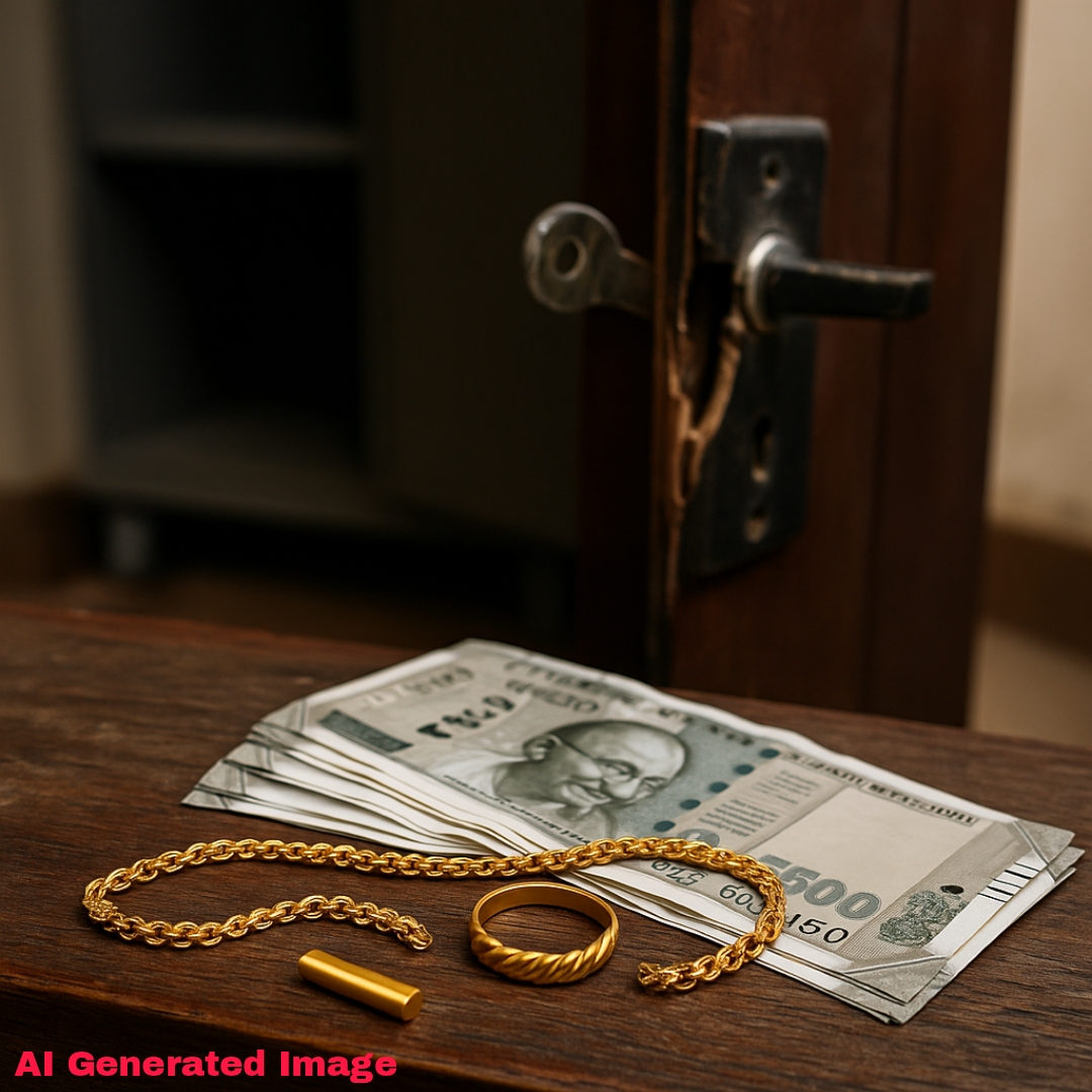 फिर्यादी संजय किसनराव दसरे (४४) हे सकाळी नोकरीसाठी बाहेर गेले होते. त्या वेळेत अज्ञात चोरट्याने घराचे कुलूप तोडून कपाटातील लॉकर उघडले. लॉकरमध्ये ठेवलेली सात ग्रॅम वजनाची गळ्यात घालण्याची सोन्याची साखळी, सात ग्रॅम वजनाची सोन्याची पिळाची अंगठी, एक ग्रॅमची सोन्याची कडी आणि पाच हजार रुपये रोख रक्कम असा एकूण ४४,००० रुपयांचा ऐवज चोरून नेला.
