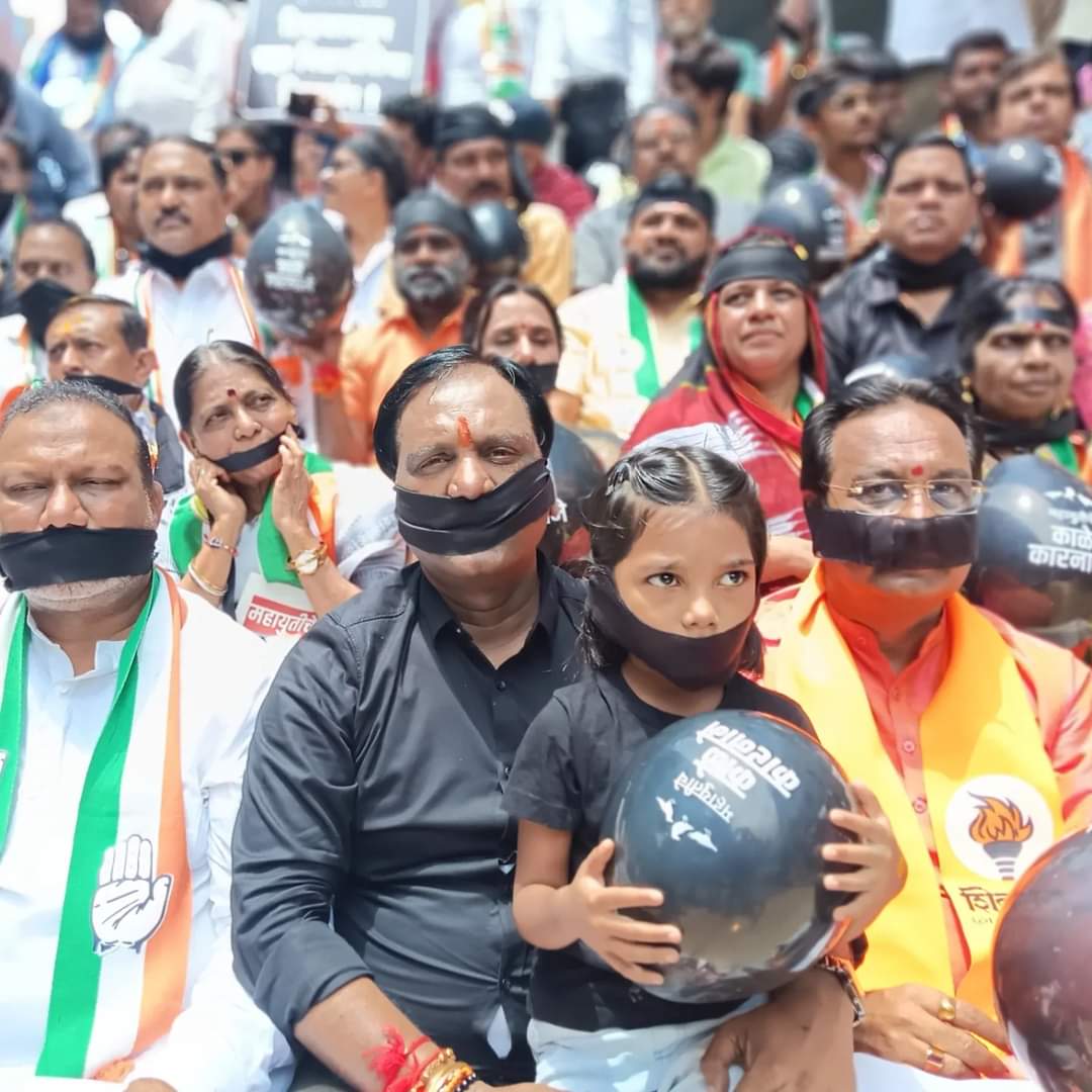 राज्य सरकारच्या धोरणांविरोधात महाविकास आघाडीच्या वतीने क्रांती चौकात जोरदार आंदोलन करण्यात आले. या आंदोलनात सहभागी झालेल्या कार्यकर्त्यांनी काळ्या फिती बांधून राज्य सरकारचा निषेध व्यक्त केला.